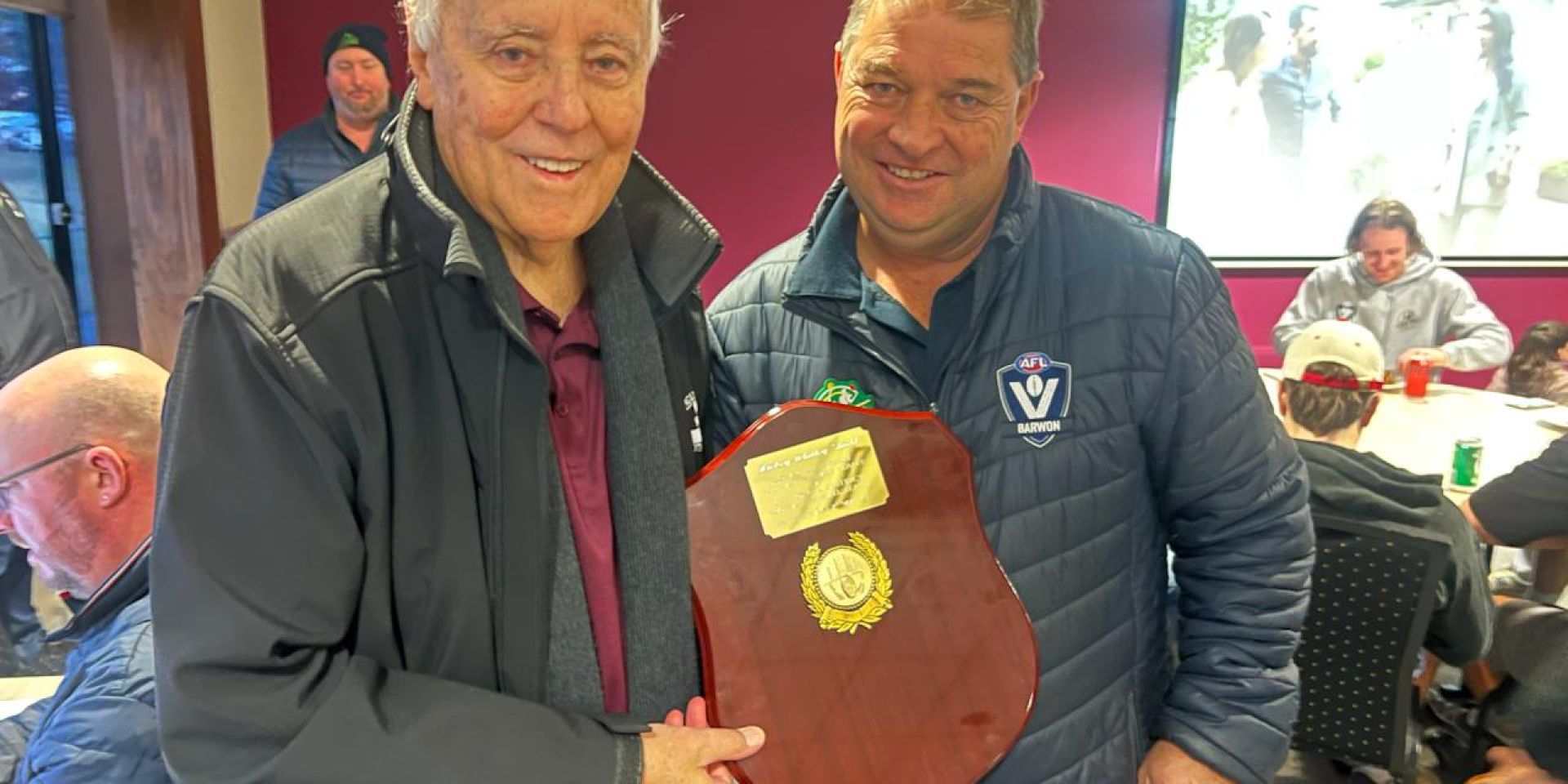 A post-match ceremony was held with the presentation of the inaugural Whitley-Hickey Shield in honour of GDFNL president Neville Whitley and CDFNL chairman Peter Hickey.